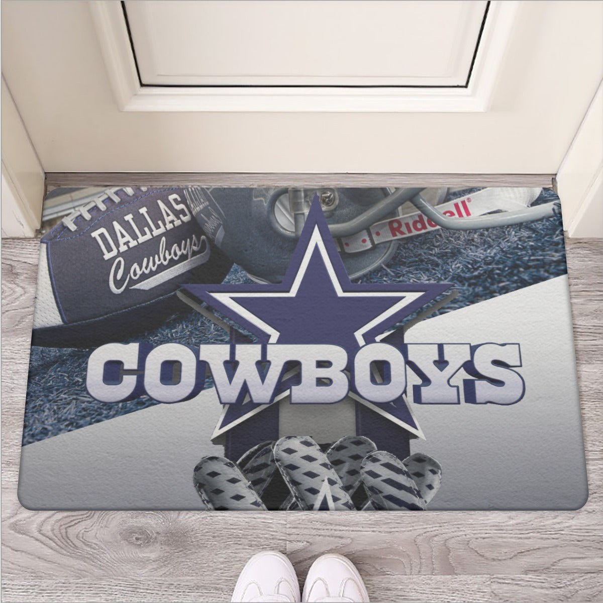 Show your team spirit with our Dallas Cowboys Door Mat. Made from durable rubber, this mat is designed to withstand the elements while welcoming guests. The official Cowboys logo adds a touch of fandom to your doorstep. Enhance your home's curb appeal and showcase your team pride with this high-quality mat. Stain resistant, easy to vacuum, and perfect for any room and decor.