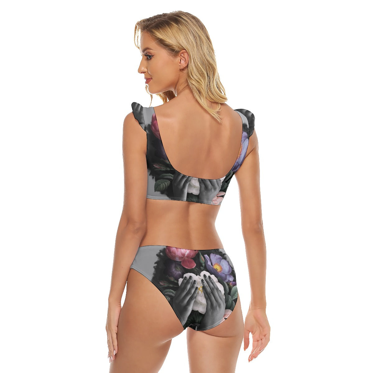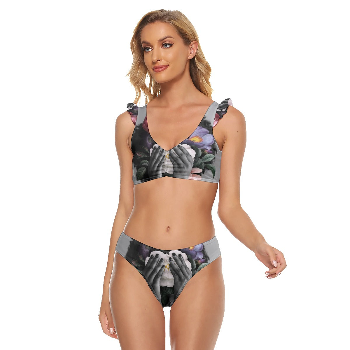 Hidden Flower - Women's Bikini Swimsuit With Ruffle Cuff Bra