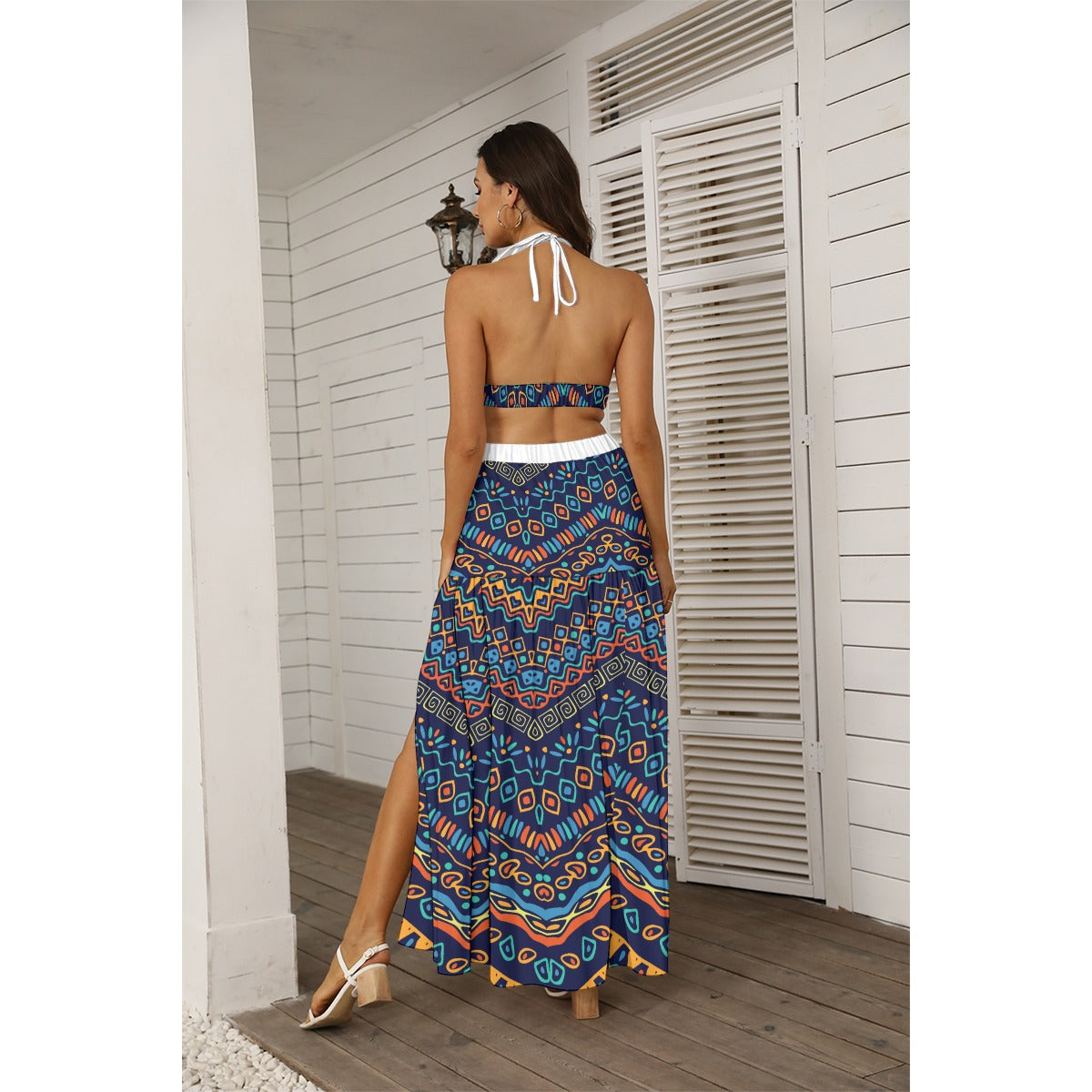 - Spaghetti straps, cross back tie, side split