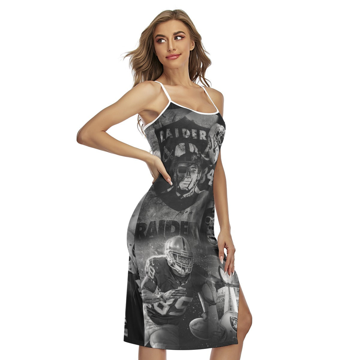 Las Vegas Raiders cami Dress. Sexy knitted suspender skirt, side slit design can properly show the shape of the legs, the back suspenders are crossed, and the beautiful back is outlined