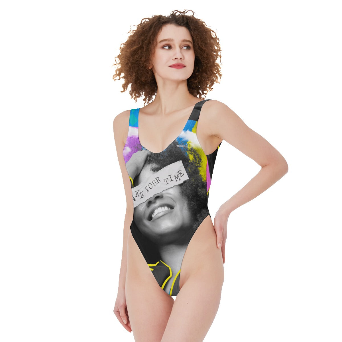 Take Your Time - Women's High Cut One-piece Swimsuit